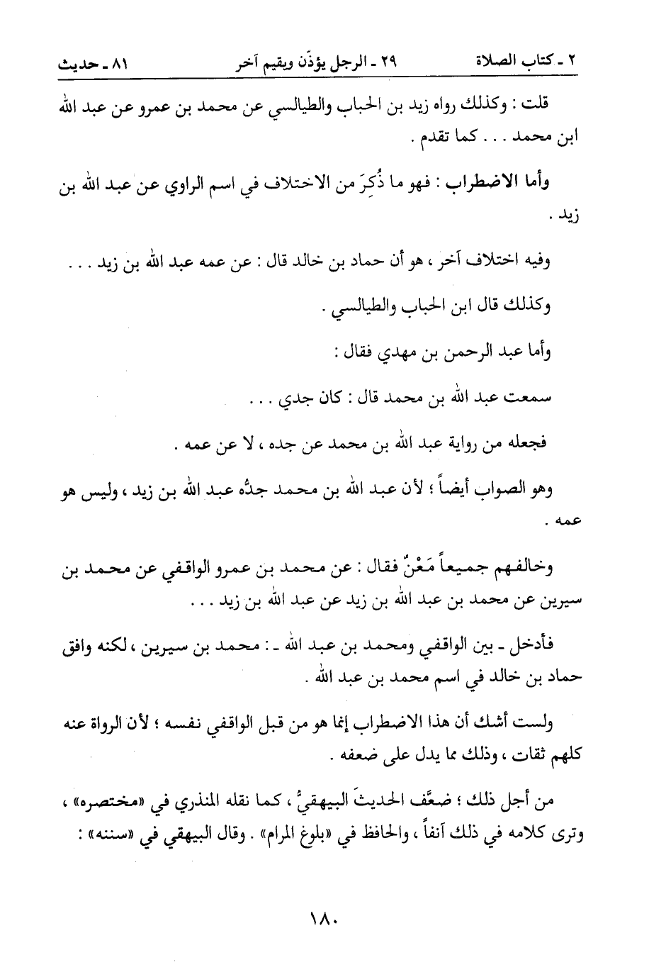 وفيه اختلاف آخر، هو أن حماد بن خالد قال: عن عمه عبد الله بن زيد ...