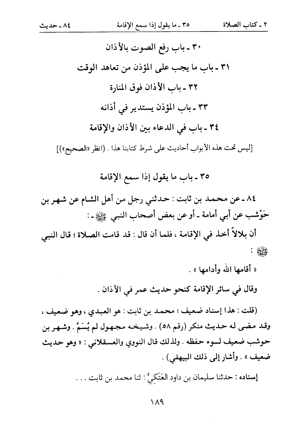 35- باب ما يقول إذا سمع الاقامة