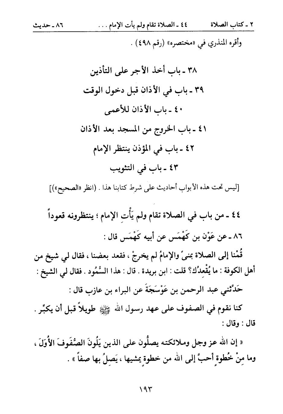 44- من باب في الصلاة تقام ولم يأْتِ الامام؛ ينتظرونه قعوداً