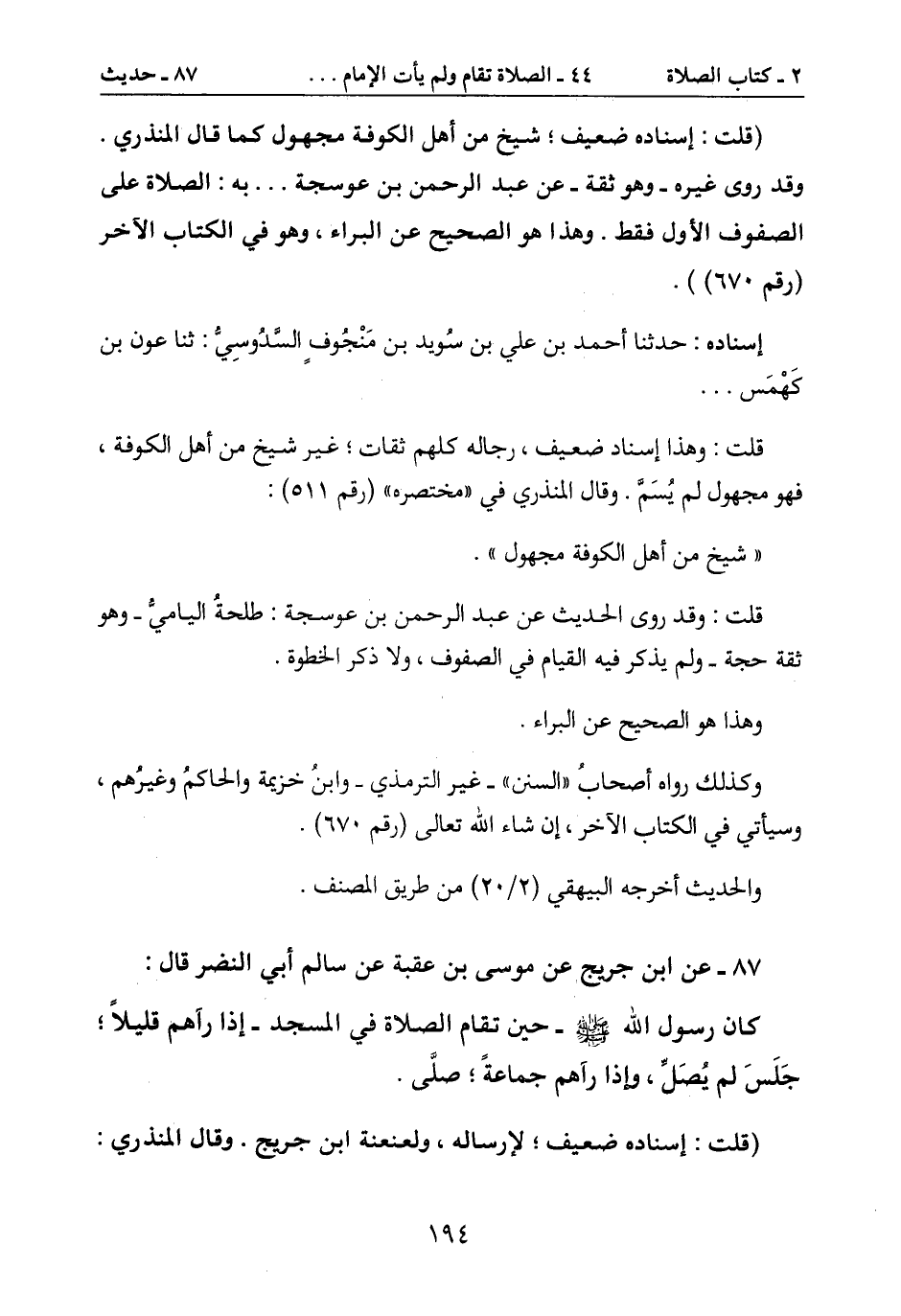 ثقة حجة- ولم يذكر فيه القيام في الصفوف، ولا ذكر الخطوة.