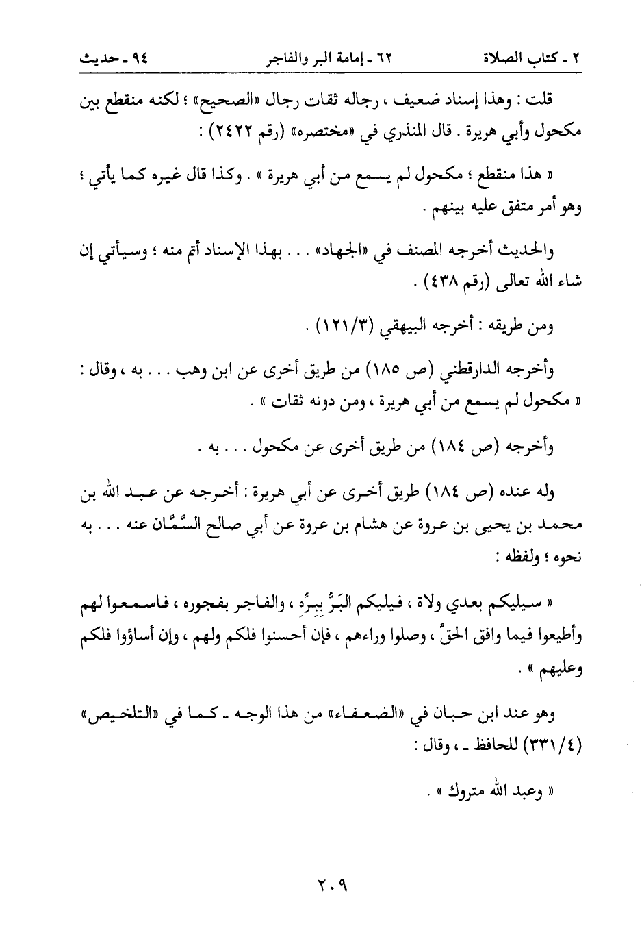 وهو عند ابن حبان في " الضعفاء " (من هذا الوجه- كما في " التلخيص "