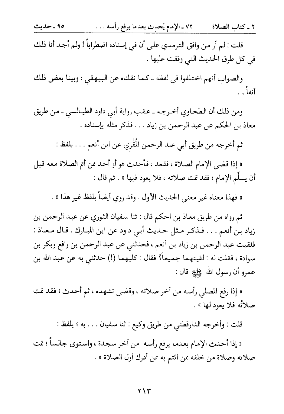 أن يسلِّم الإمام؛ فقد تمت صلاته، فلا يعود فيها ". ثم قال: