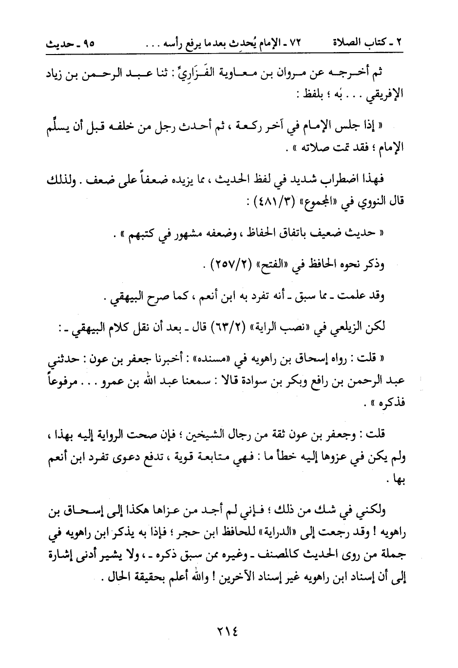 راهويه! وقد رجعت إلي " الدراية " للحافظ ابن حجر؛ فإذا به يذكر ابن راهويه في