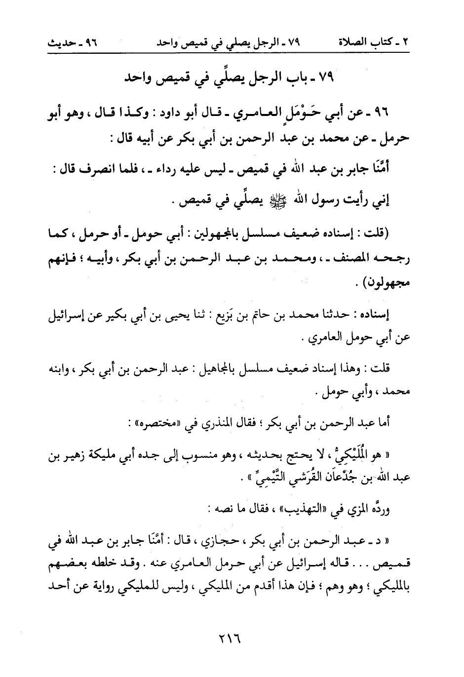 79- باب الرجل يصلِّي في قميص واحد