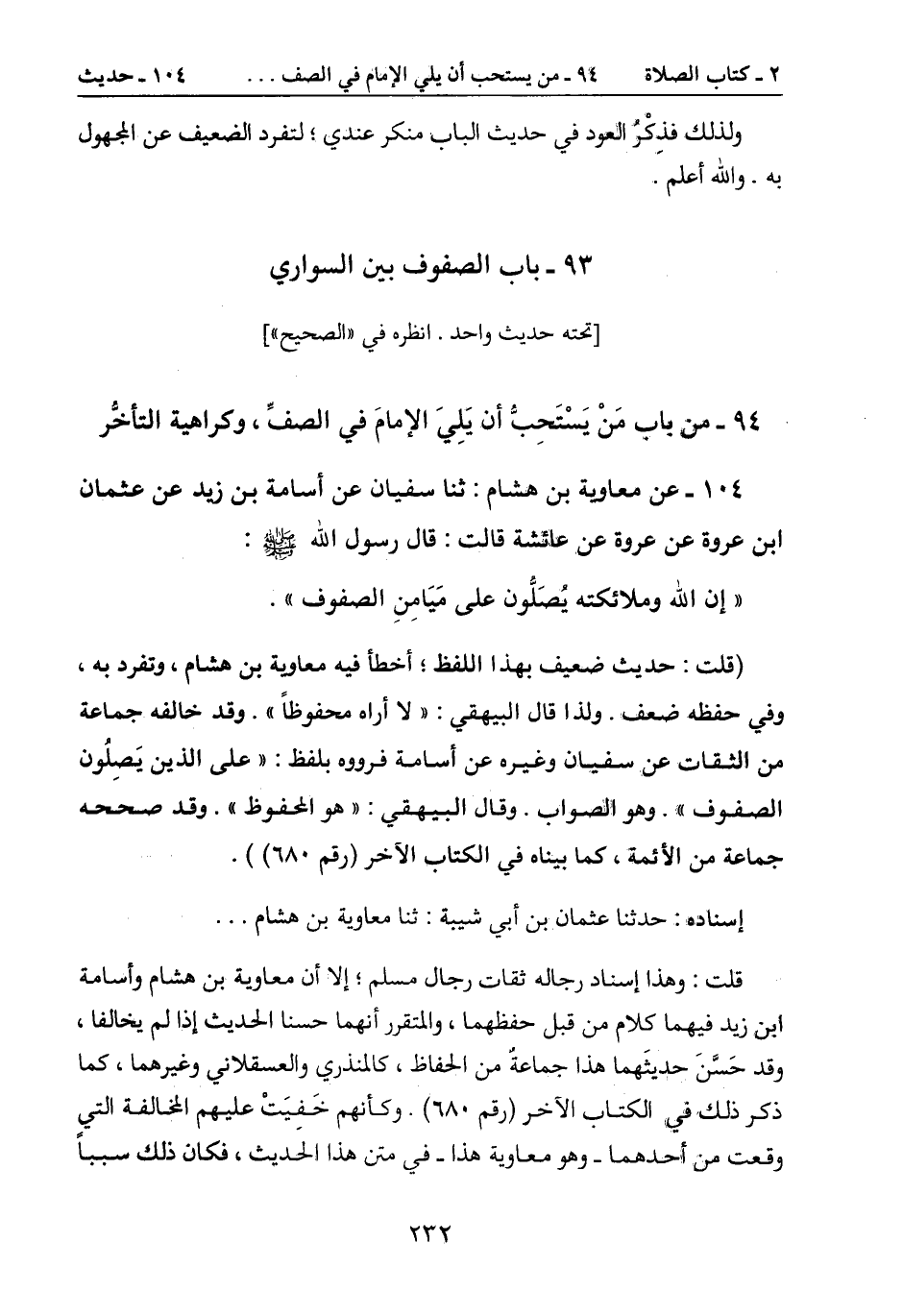 94- من باب منْ يسْتحِبُّ أن يلِي الإمام في الصفِّ، وكراهية التأخر