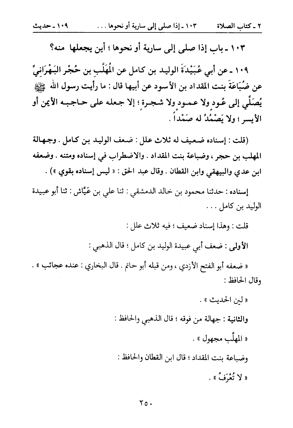 109- عن أبي عُبيْدة الوليد بن كامل عن المُهلّب بن حُجْر البهْرانِي