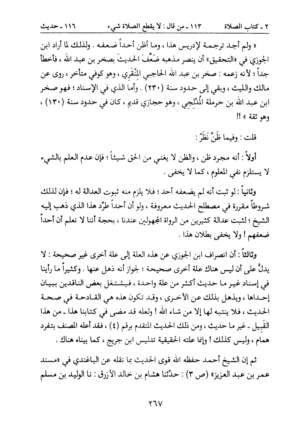 وثالثاً: أن انصراف ابن الجوزي عن هذه العلة إلى علة أخرى غير صحيحة: لا