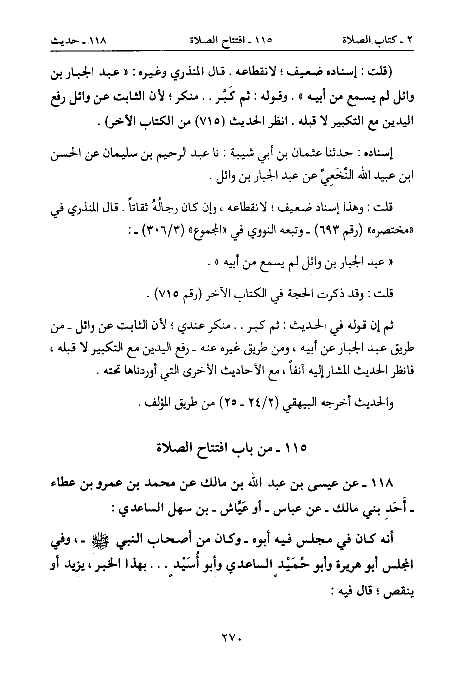 (قلت: إسناده ضعيف؛ لانقطاعه. قال المنذري وكيره: " عبد الجبار بن