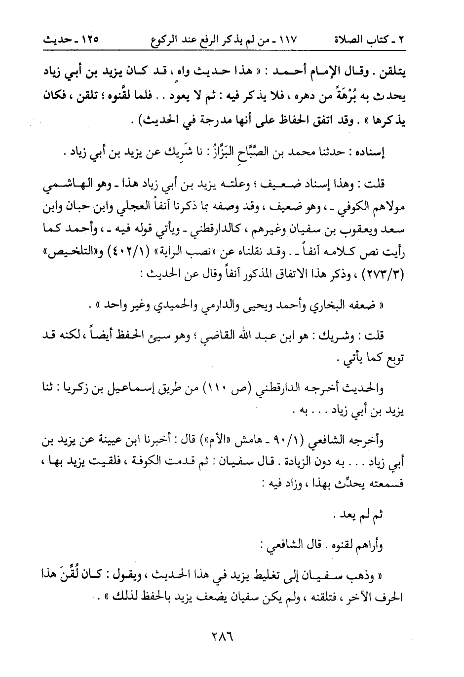 رأيت نص كلامه آنفاً-. وقد نقلناه عن " نصب الراية " (1/402) و " التلخيص "