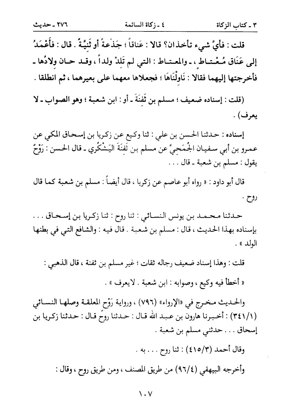 قالى أبو داود: " رواه أبو عاصم عن زكريا، قال أيضاً: مسلم بن شعبة كما قال