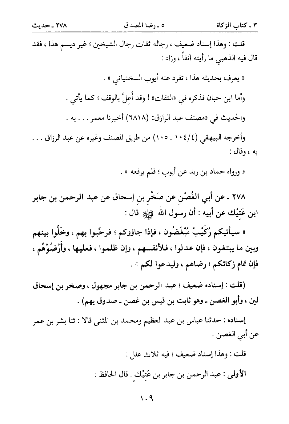 278- عن أبي الغُصْنِ عن صخْرِ بنِ إسحاق عن عبد الرحمن بن جابر