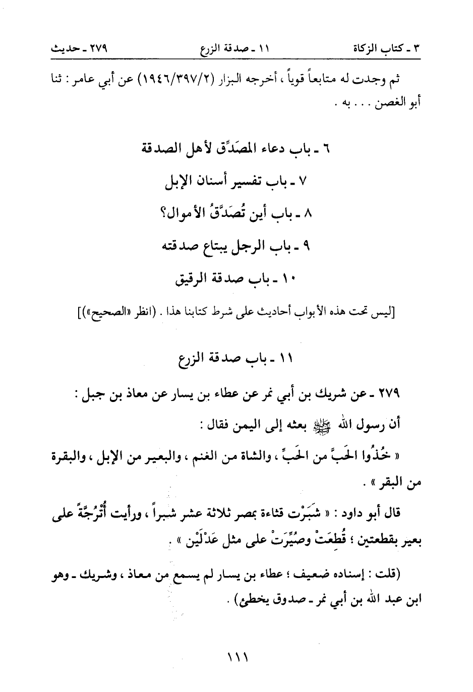 279- عن شريك بن أبي نمر عن عطاء بن يسارعن معاذ بن جبل: