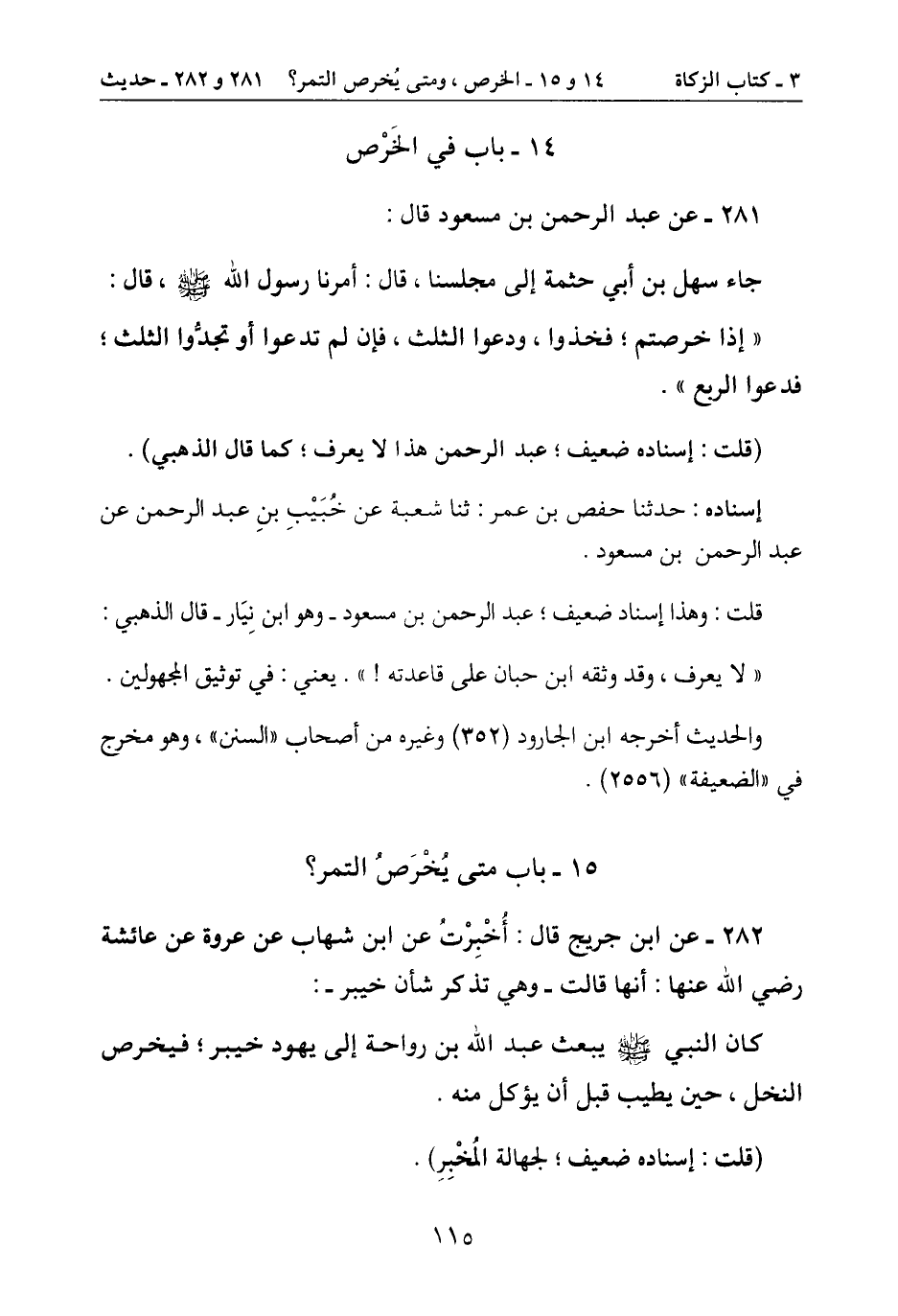 " إذا خرصتم؛ فخذوا، ودعوا الثلث، فإن لم تدعوا أو تجدُوا الثلث؛