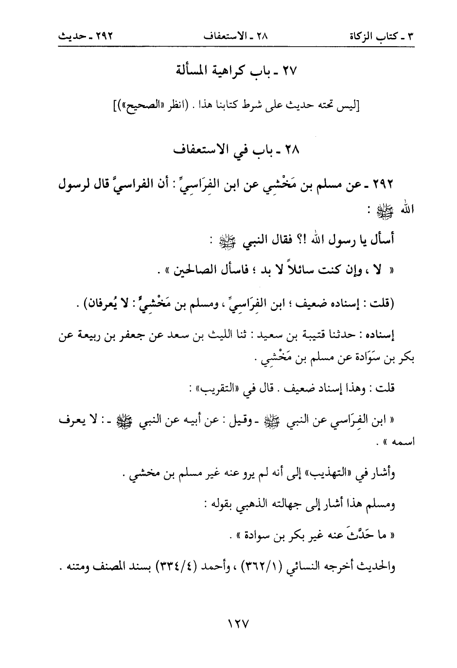 292- عن مسلم بن مخْشِي عن ابن الفِراسِي: أن الفراسي قال لرسول