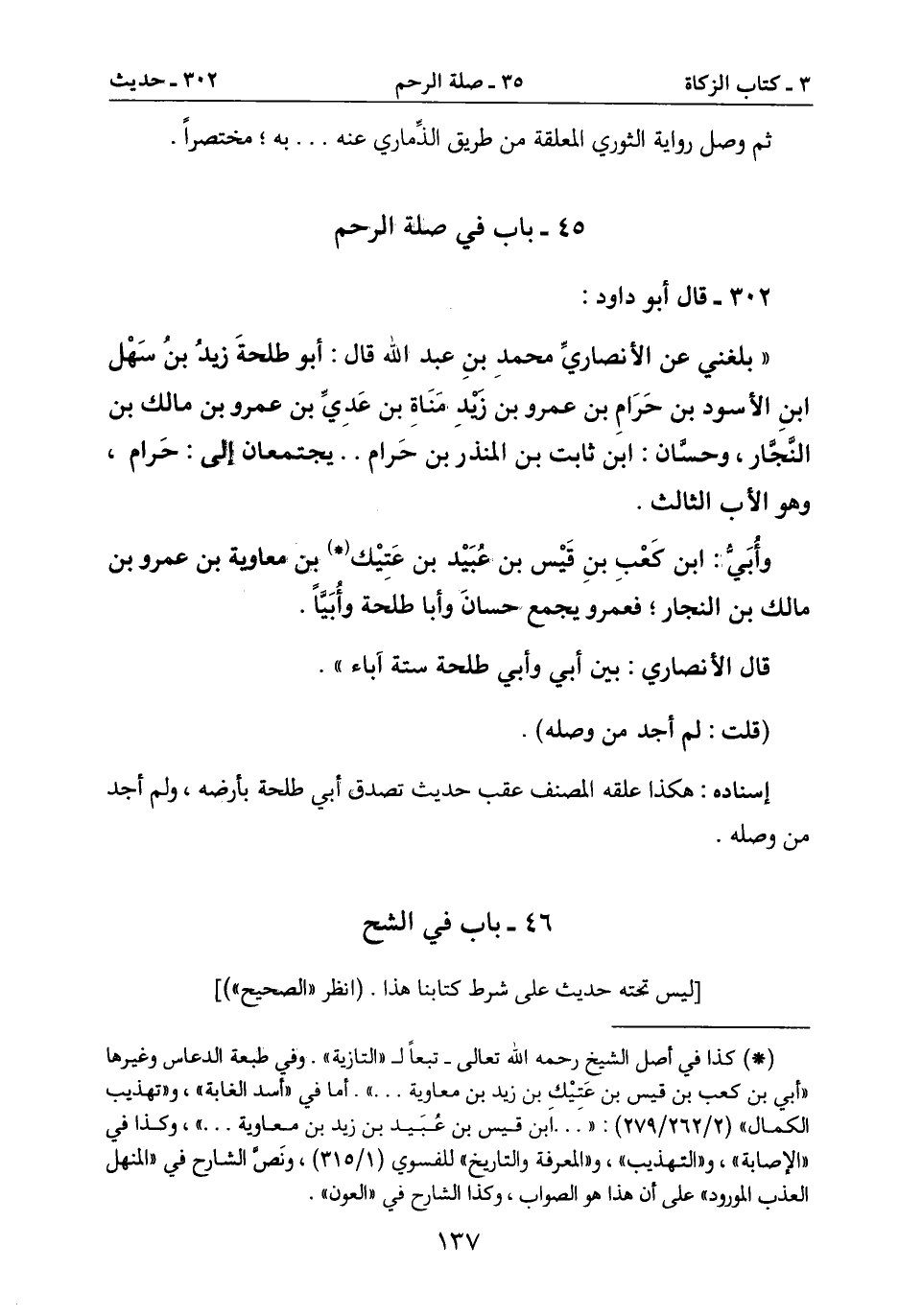 " بلغني عن الأنصاريً محمدِ بنِ عبد الله قال: أبو طلحة زيدُ بنُ سهْل