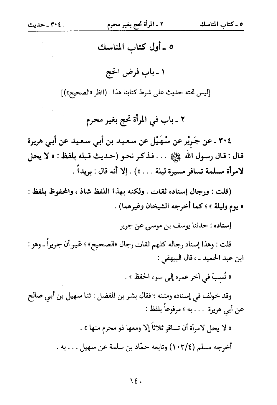 304- عن جرِيْرعن سهيْل عن سعيد بن أبي سعيد عن أبي هريرة