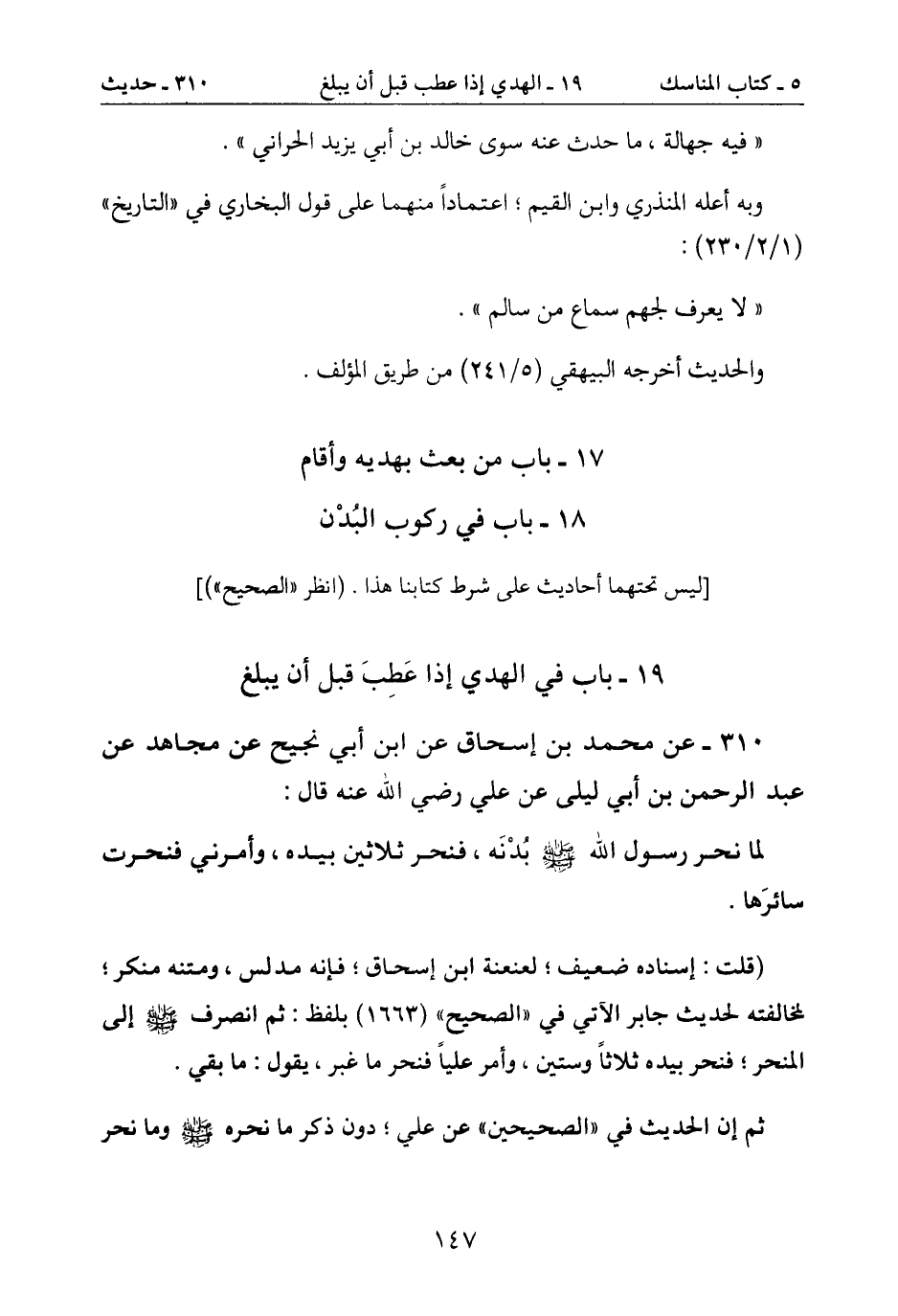ثم إن الحديث في "الصحيحين " عن علي؛ دون ذكر ما نحره صَلَّى اللَّهُ عَلَيْهِ وَسَلَّمَ وما نحر