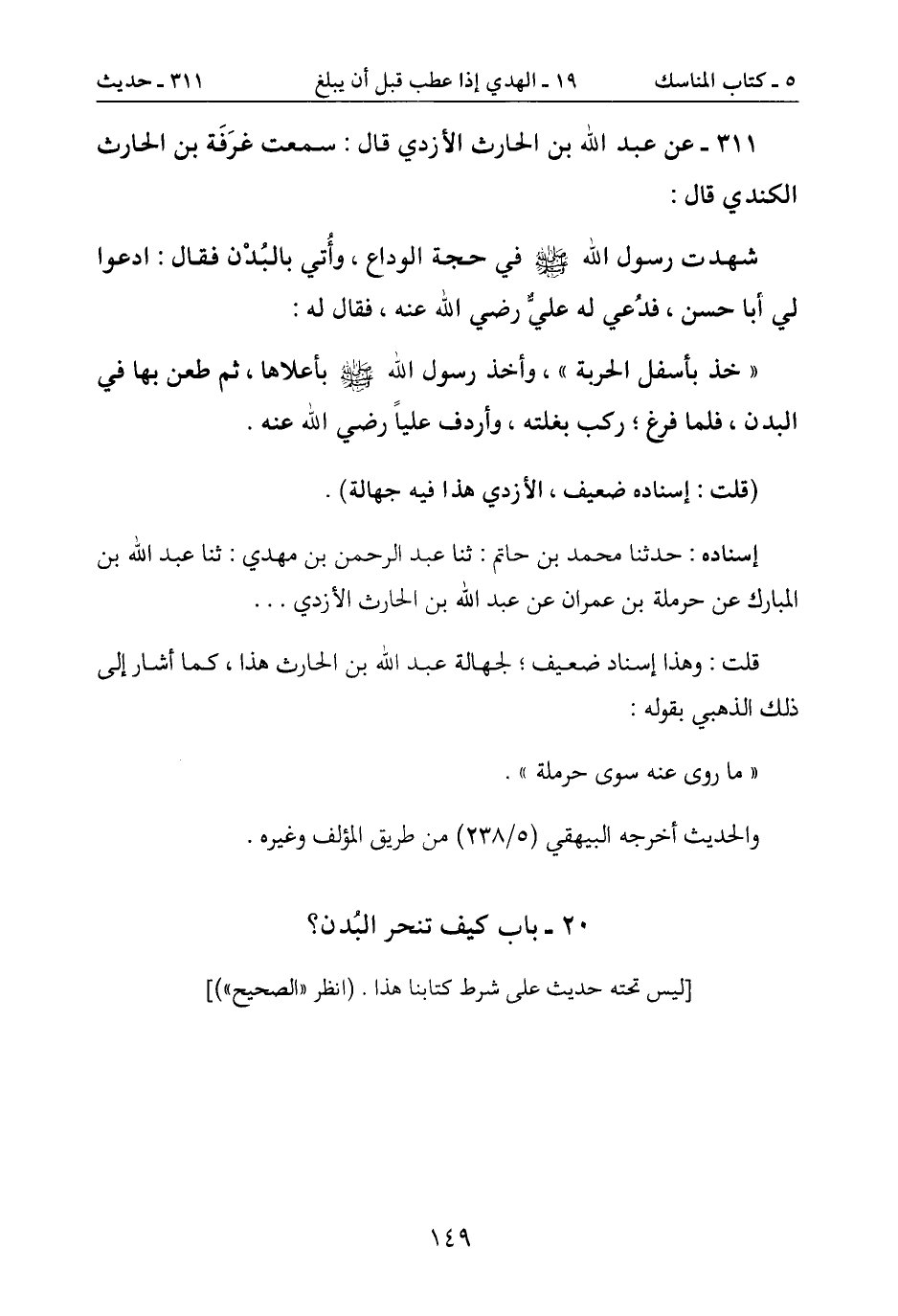311- عن عبد الله بن الحارث الأزدي قال: سمعت غرفة بن الحارث