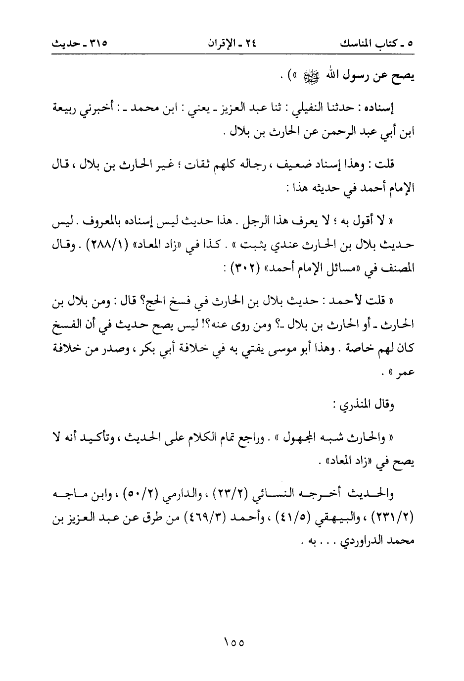 " قلت لأحمد: حديث بلال بن الحارث في فسخ الحج؟ قال: ومن بلال بن
