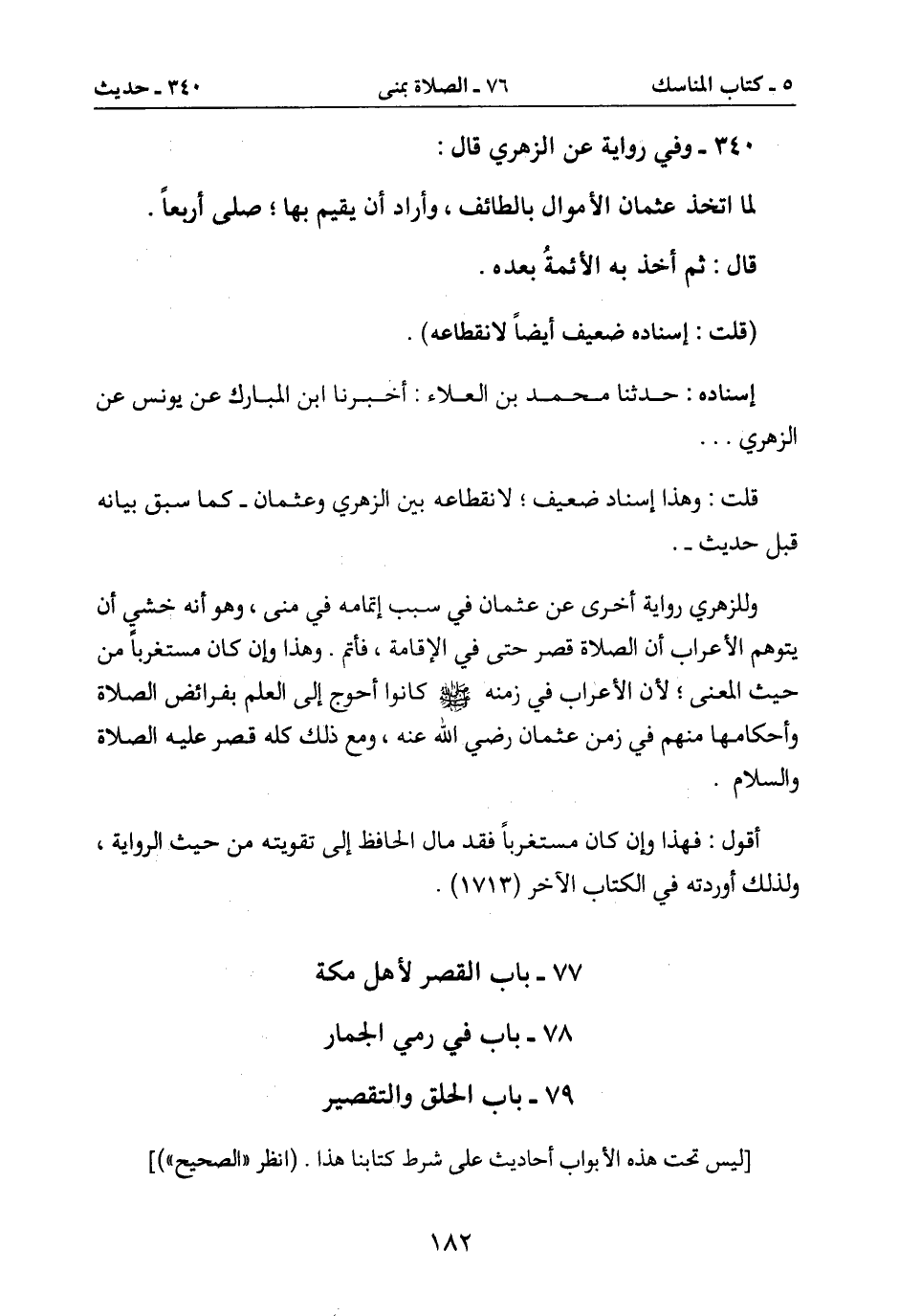 وأحكامها منهم في زمن عثمان رضي الله عنه، ومع ذلك كله قصر عليه الصلاة