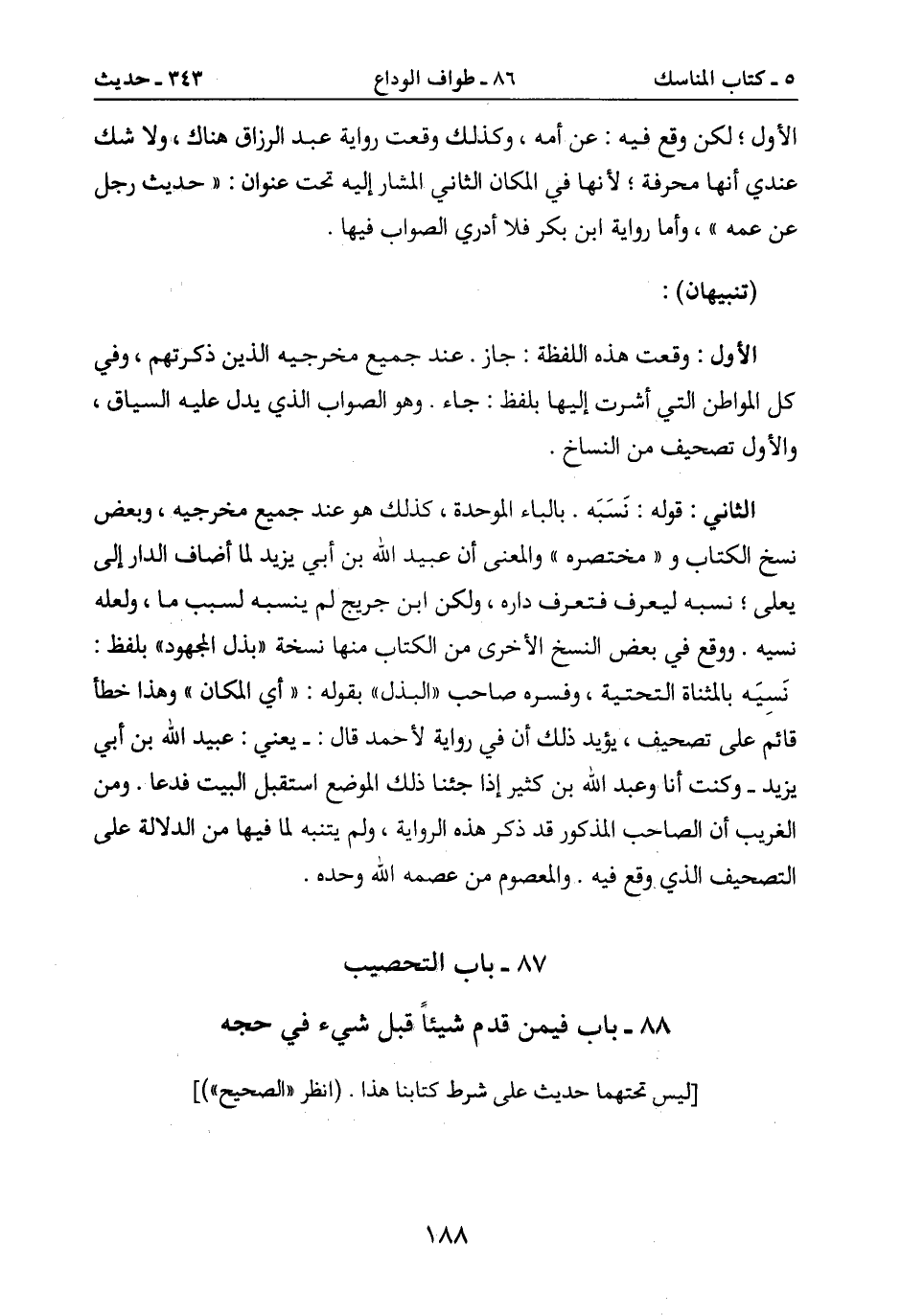 الثاتي: قوله: نسبه. بالباء الوحدة، كذلك هو عند جميع مخرجيه، وبعض