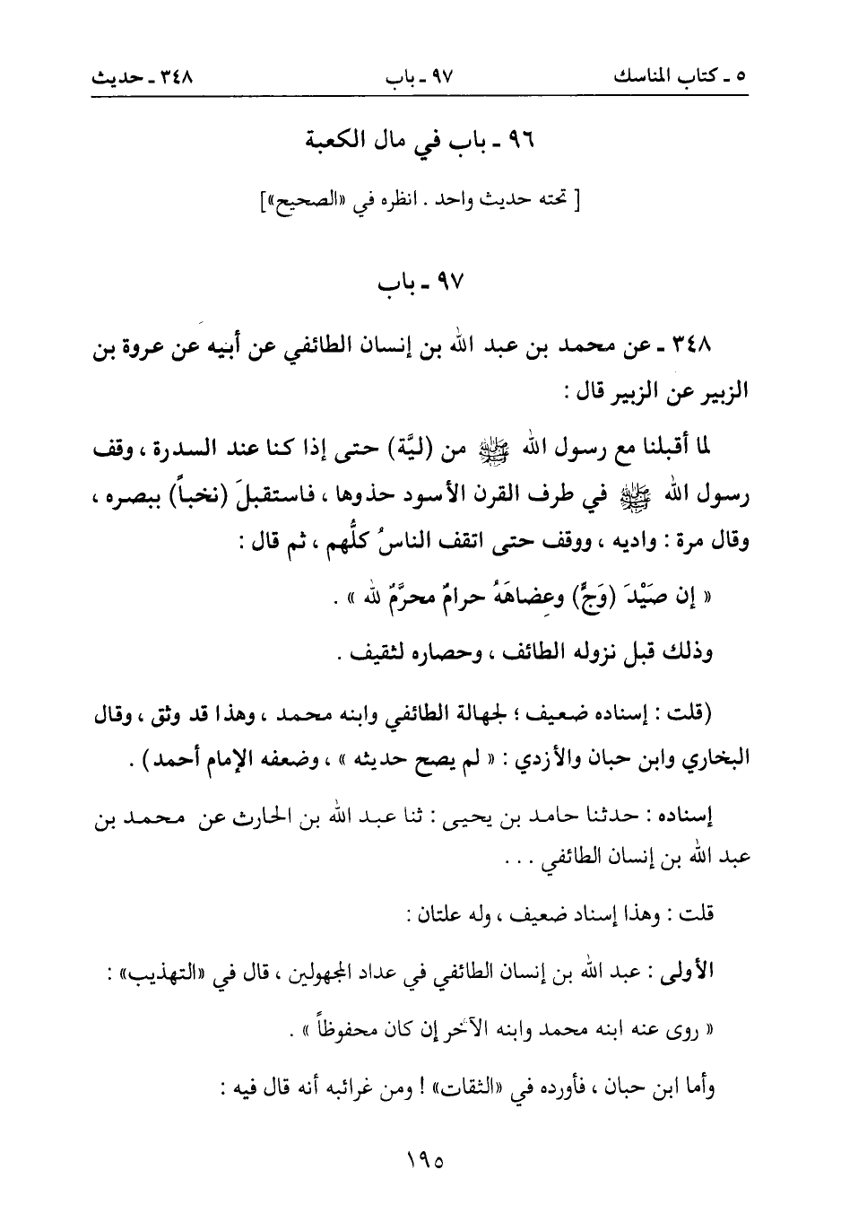 348- عن محمد بن عبد الله بن إنسان الطائفي عن أبيه عن عروة بن