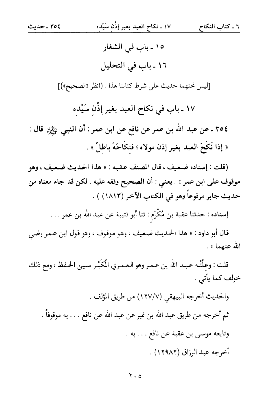 قال أبو داود: " هذا الحديث ضعيف، وهو موقوف، وهو قول ابن عمر رضي