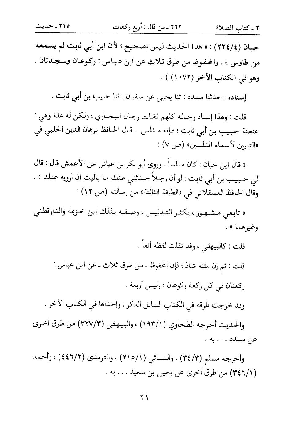 قلت: ثم إن متنه شاذ؛ فإن المحفوظ- من طرق ثلاث- عن ابن عباس: