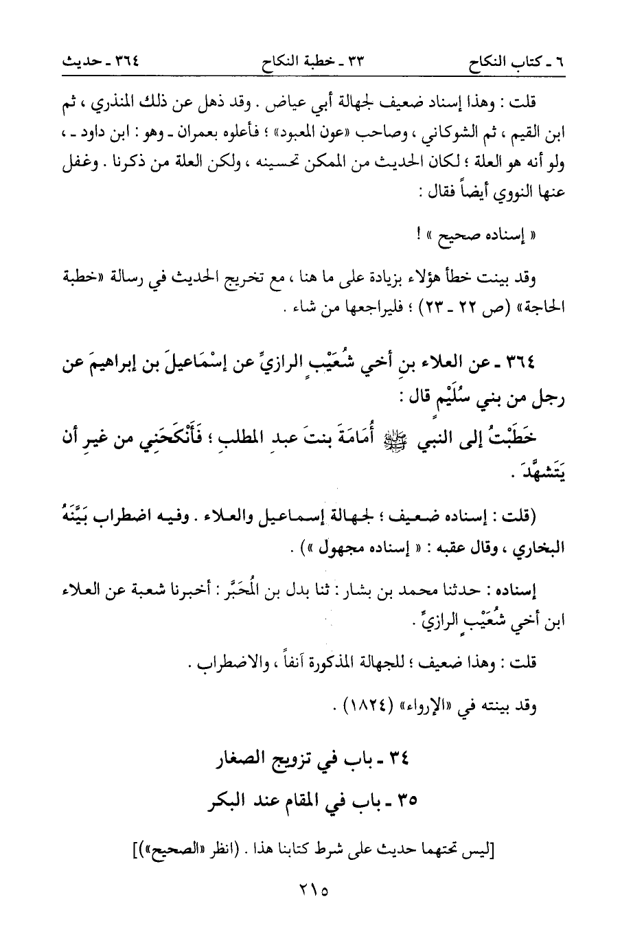 وقد بينت خطأ هؤلاء بزيادة على ما هنا، مع تخريج الحديث في رسالة "خطبة