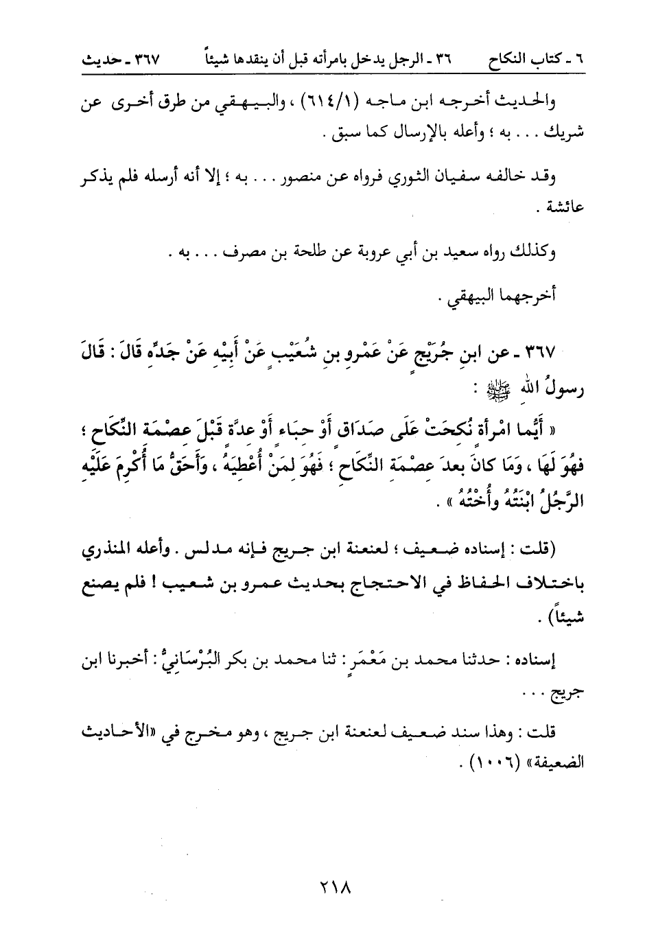 367- عن ابنِ جُريج عنْ عمْروِ بنِ شُعيْبِ عنْ أبِيْهِ عنْ جدِّهِ قال: قال