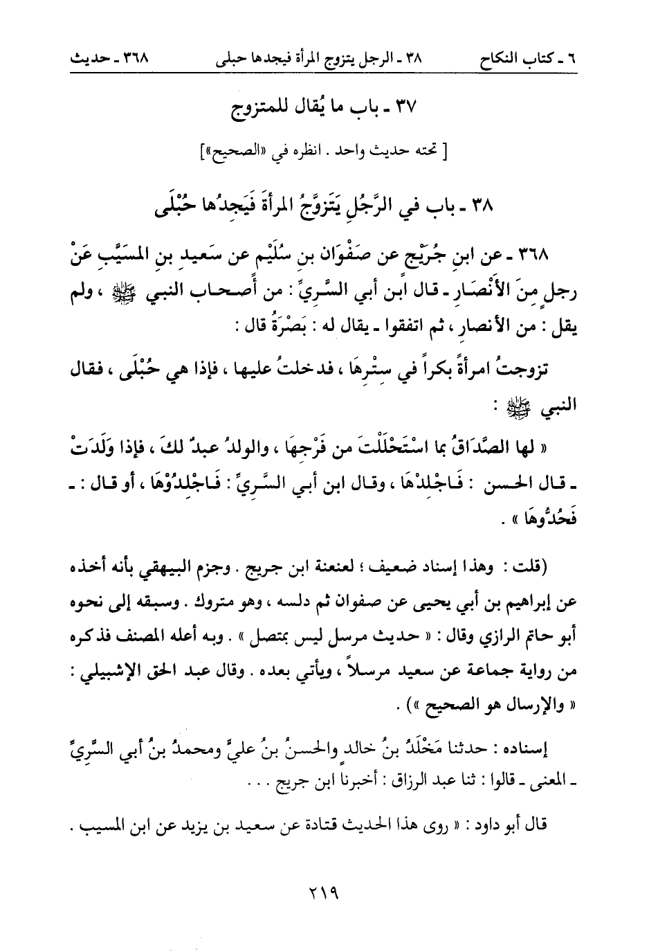 38- باب في الرّجُلِ يتزوّجُ المرأة فيجِدُها حُبْلى