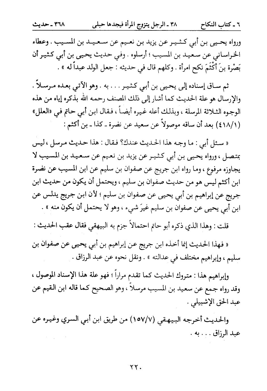 ورواه يحيى بن أبي كثير عن يزيد بن نعيم عن سعيد بن السيب. وعطاء