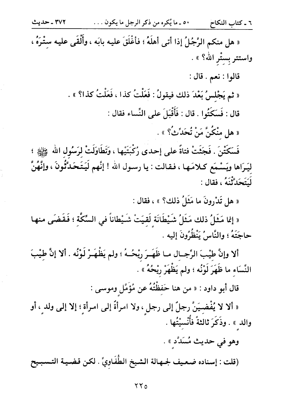 " هل منكم الرّجُلُ إذا أتى أهلهُ؛ فأغْلق عليه بابه، وألقى عليه سِتْره،