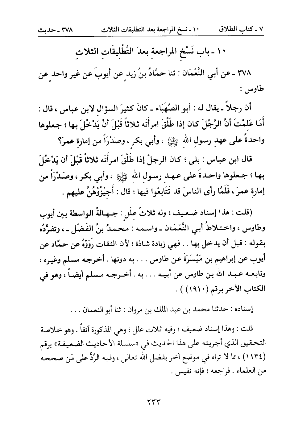 10- باب نسْخِ المراجعةِ بعد التّطْلِيقاتِ الثلاثِ