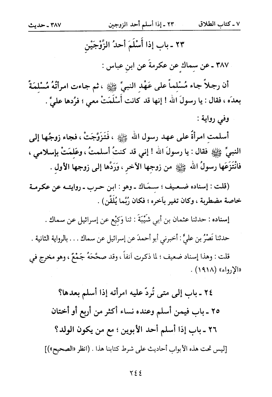 23- باب إذا أسْلم أحدُ الزّوْجيْنِ