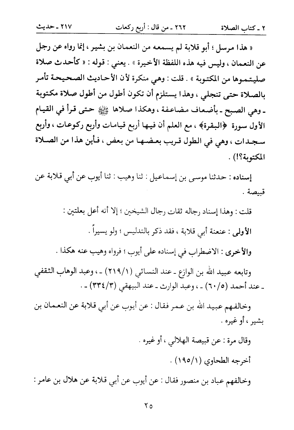 " هذا مرسل؛ أبو قلابة لم يسمعه من النعمان بن بشير، إنما رواه عن رجل