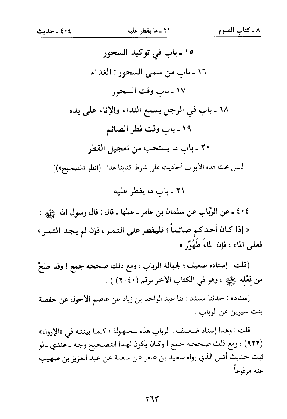 404- عن الرباب عن سلمان بن عامر- عمِّها- قال: قال رسول الله صَلَّى اللَّهُ عَلَيْهِ وَسَلَّمَ: