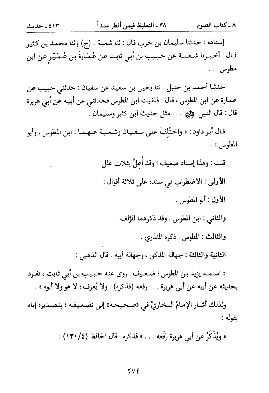 حدثا أحمد بن حنبل: ثنا يحيى بن سعيد عن سفيان: حدثني حبيب عن