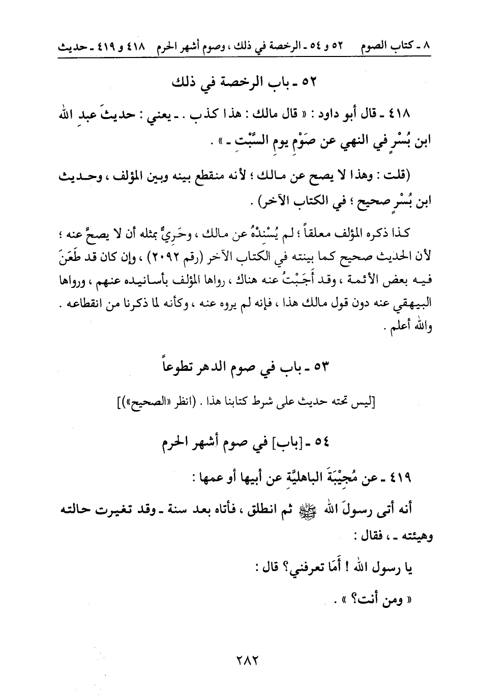 418- قال أبو داود: " قال مالك: هذا كذب.- يعني: حديث عبدِ الله