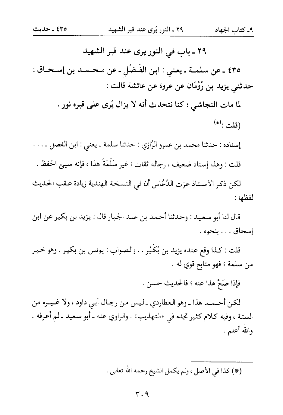 29- باب في النور يرى عند قبر الشهيد