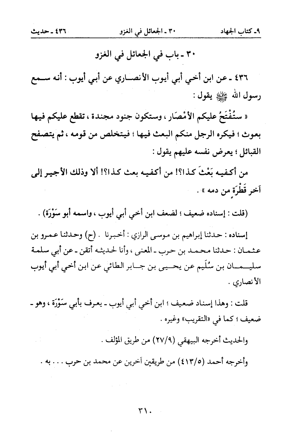 436- عن ابن أخي أبي أيوب الأنصاري عن أبي أيوب: أنه سمع