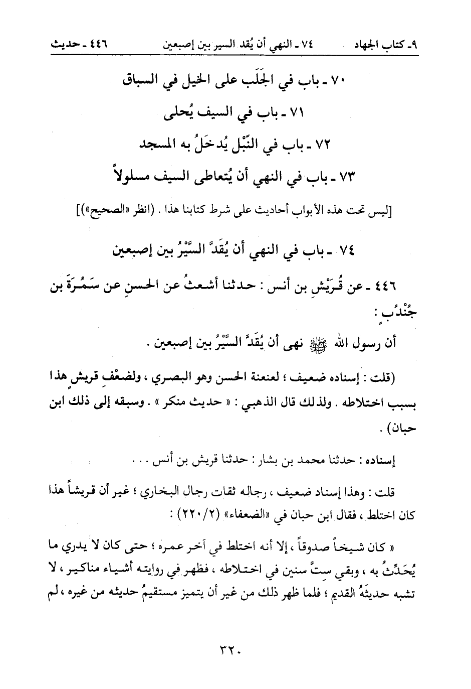 74- باب في النهي أن يُقدّ السّيْرُ بين إصبعين