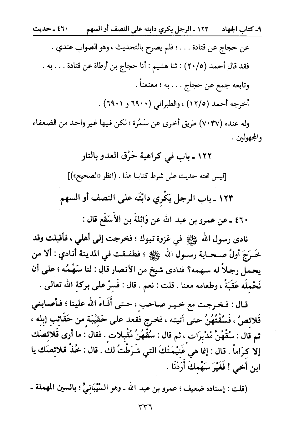 123- باب الرجل يكْرِي دابّته على النصف أو السهم