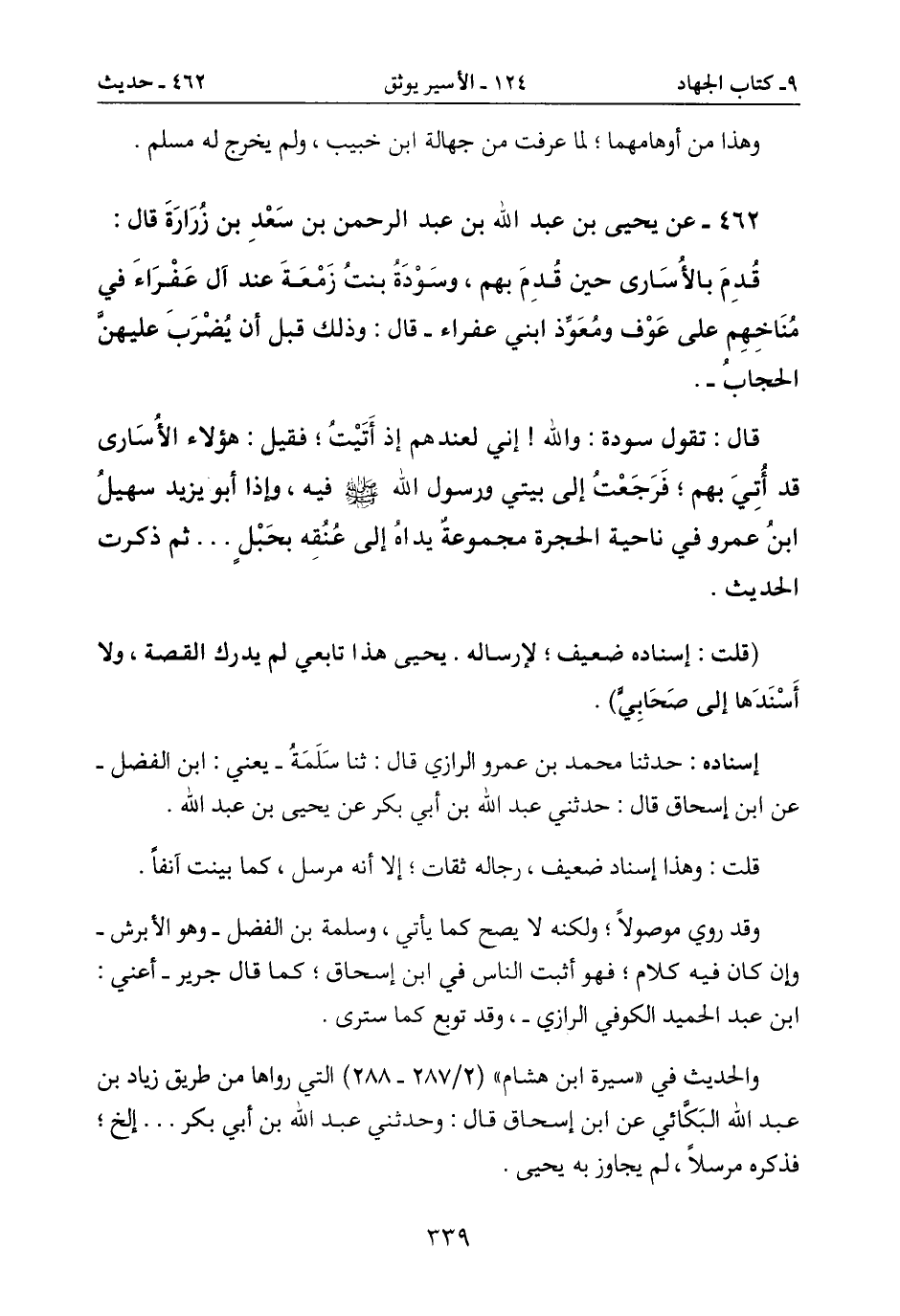 قُدِم بالأُسارى حين قُدِم بهم، وسوْدة بنتُ زمْعة عند آل عفْراء في