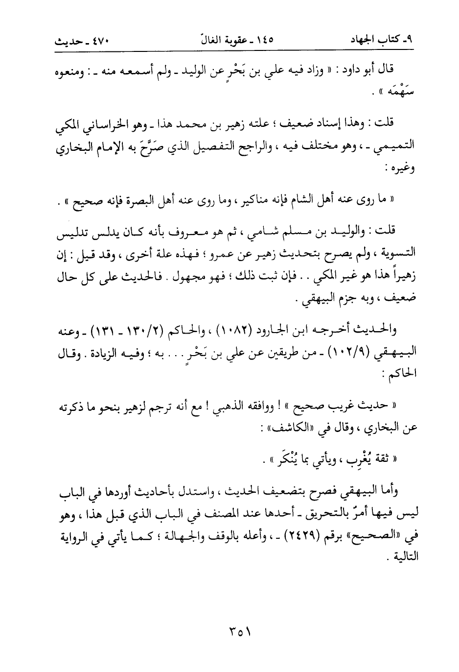 قال أبو داود: " وزاد فيه علي بن بحْرٍ عن الوليد- ولم أسمعه منه-: ومنعوه