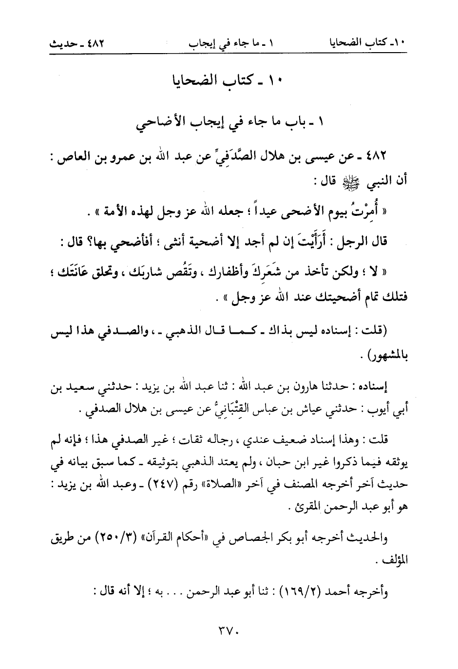 1- باب ما جاء في إيجاب الأضاحي