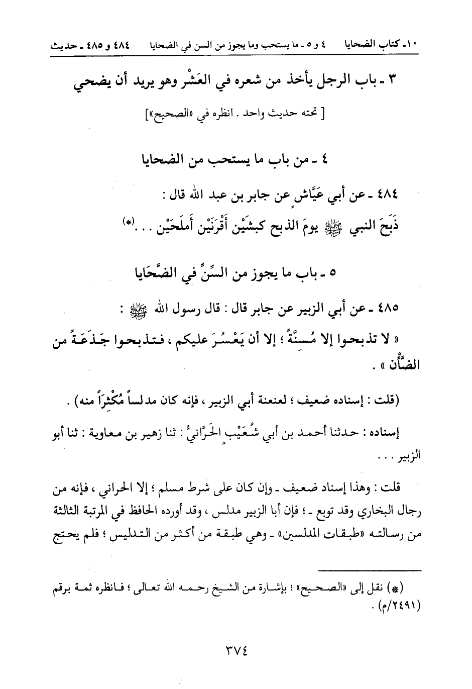485- عن أبي الزبير عن جابر قال: قال رسول الله صَلَّى اللَّهُ عَلَيْهِ وَسَلَّمَ: