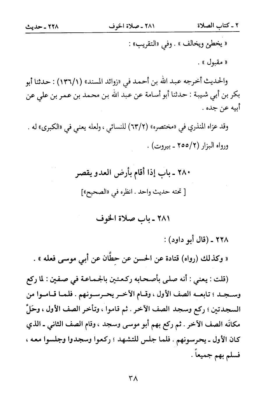 وسجد؛ تابعه الصف الأول، وقام الآخر يحرسونهم. فلما قاموا من