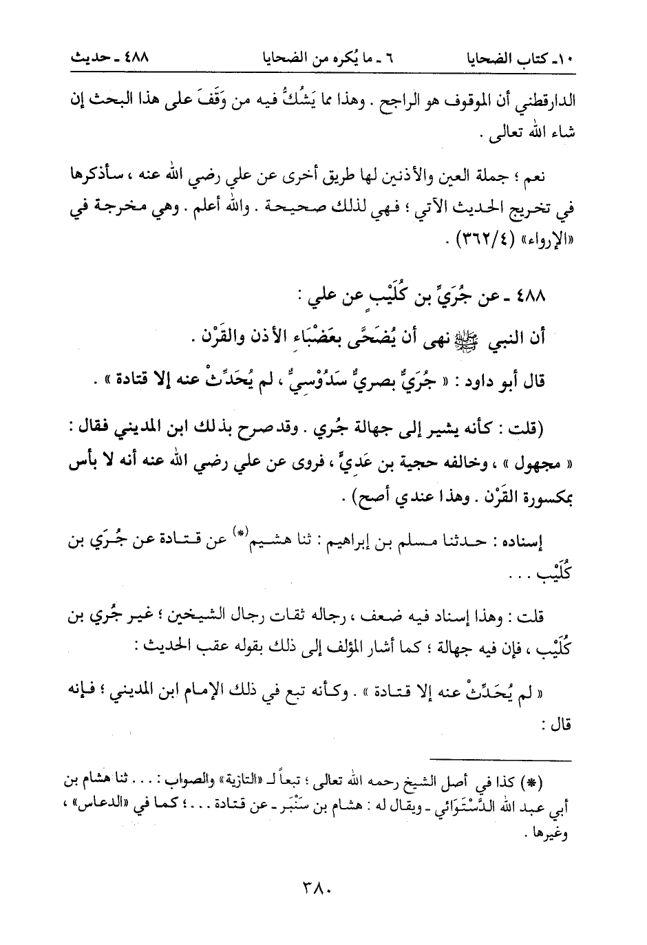 إسناده: حدثنا مسلم بن إبراهيم: ثنا هشيم (*) عن قتادة عن جري بن