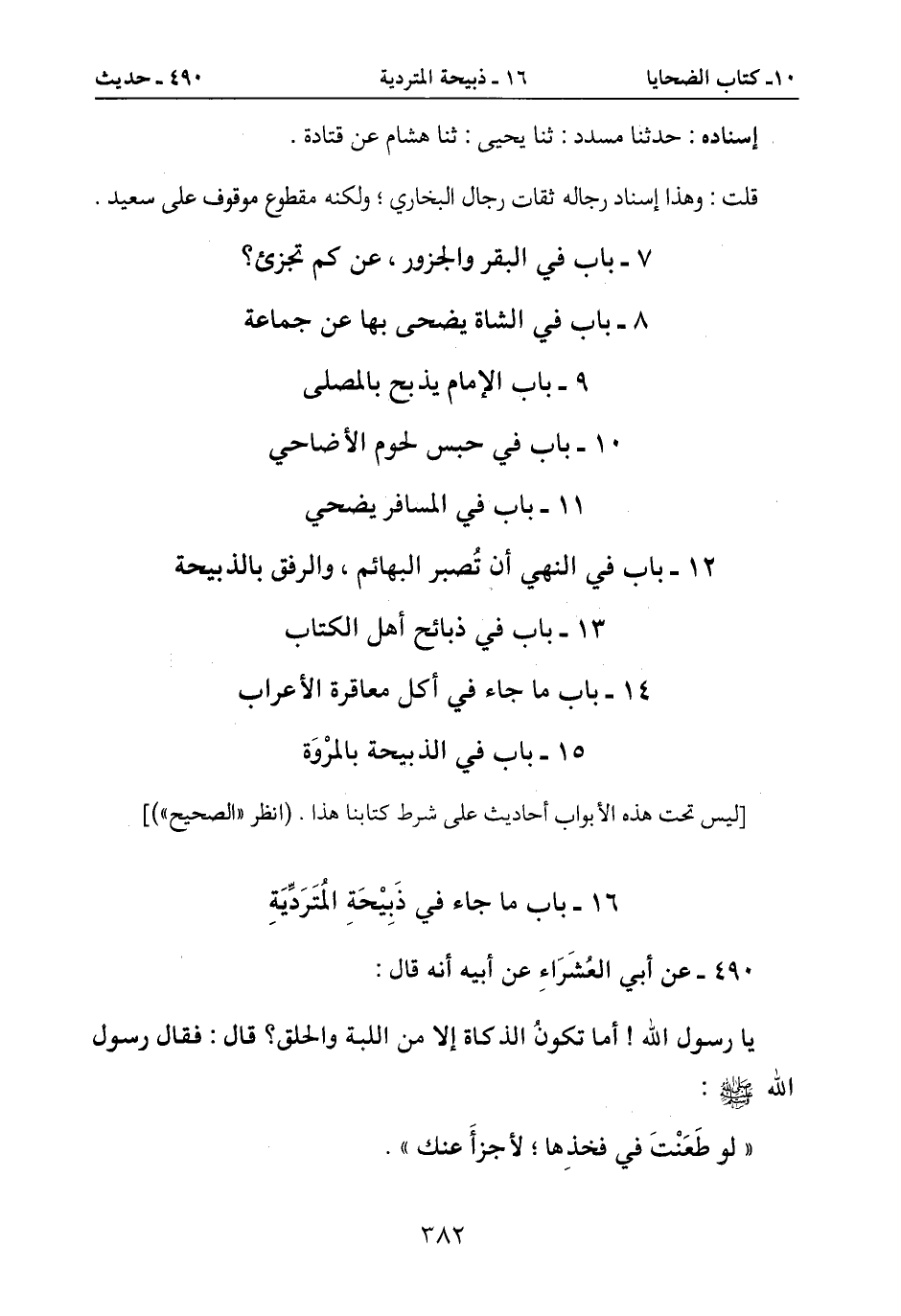 16- باب ما جاء في ذبِيْحةِ المُتردِّيةِ